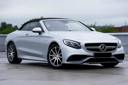 The image shows a silver Mercedes sports car parked outdoors on what appears to be a wet pavement, possibly after rain. The car is shiny and reflective, indicative of its sleek design and well-maintained condition.
