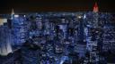 The image depicts a nighttime view of an urban skyline, with numerous buildings and skyscrapers lit up against the dark backdrop of the night sky. The lights appear to be dimmed, giving the scene a serene and somewhat moody atmosphere.