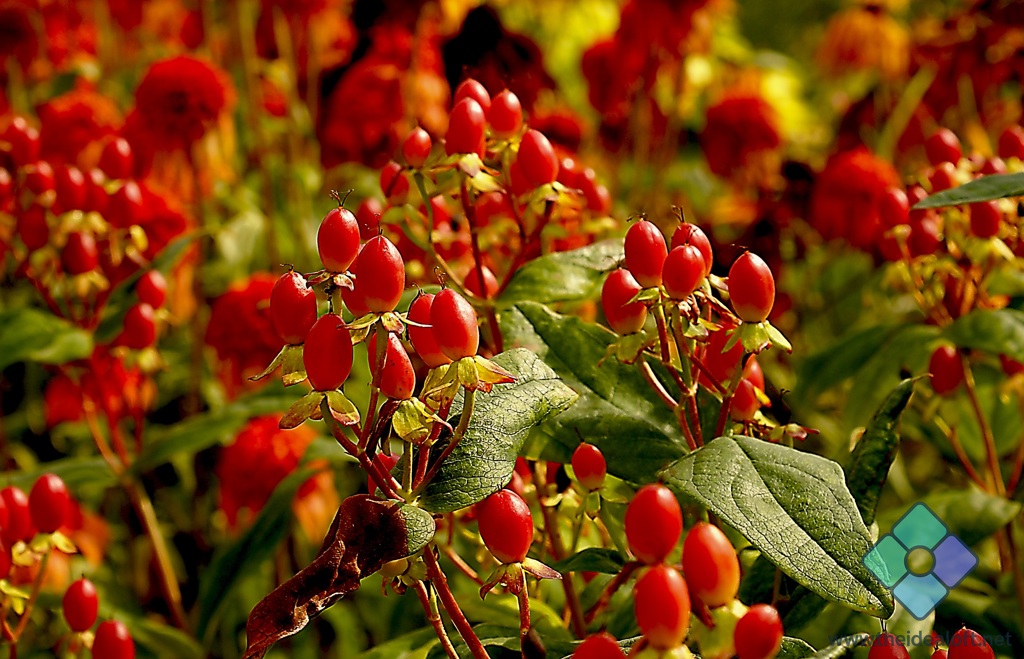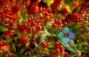 A vibrant field of red flowers, possibly roses or another type of small flowering plant.