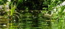 The image displays a small body of water, possibly a stream or pond, surrounded by plants and vegetation. The water appears still, reflecting the surrounding foliage. It's a natural, serene setting with no people visible in the image.
