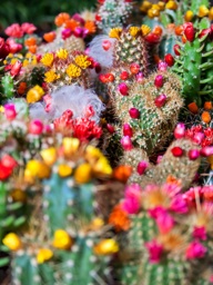 A close up of a cluster of colorful flowers, predominantly red and yellow with hints of orange, blooming in the sunlight.