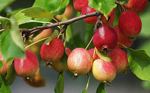 The image is a close-up of a bunch of red fruit that resemble grapes or berries. The background is blurred but indicates it might be an outdoor setting with greenery around.
