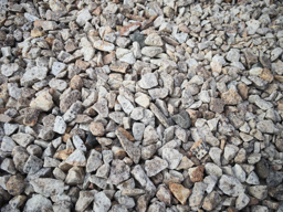 The image shows a close-up of rocks and gravel on a surface, possibly indicating ground preparation for construction or landscaping work.