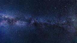 The image shows a vibrant and clear night sky filled with stars, nebulae, and galactic structures. The colors range from deep blues to purples, with hints of oranges around the brightest stars, likely indicating stellar radiation.