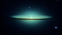 The image shows a digital rendering of space, featuring a spiral galaxy known as Whirlpool Galaxy or M51 in the constellation Canis Major. The galaxy appears to be viewed from afar, showcasing its arms and core with stars twinkling around it against a backdrop of other galaxies and distant stars. The image is brightly colored and detailed, depicting the vastness and beauty of space.