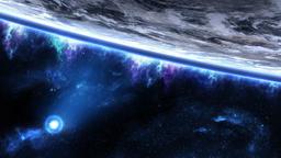 The image depicts an artistic rendering of space, specifically featuring a galaxy or nebula with stars and celestial bodies in the background. The colors are vibrant, with shades of blue, purple, and white dominating the scene. This type of image is likely to be used for educational purposes, as it provides an illustrative representation of outer space.